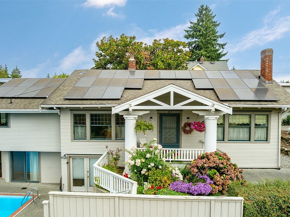 Classic 1914 Craftsman style Mount Vernon home! Many original details, custom built-ins and modern updates make this a very appealing home. Three bedrooms up with 3/4 & jack and jill baths on main level; master suite is down opening to heated pool and beautiful outside landscaping. Original leaded glass windows on main floor, built-in entertainment center, quartz counters, original fir flooring. Other details include solar panels, outside drip irrigation, leaf guard filters, recirc hot water, master suite wired for sauna. Location is walking distance to downtown Mount Vernon with all its amenities.