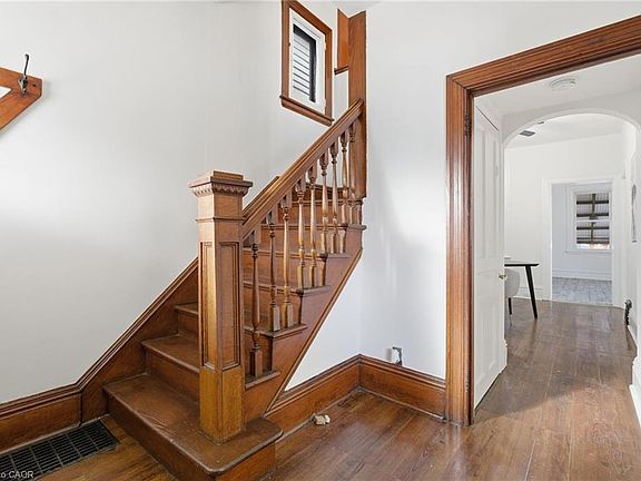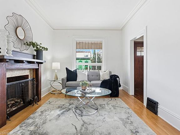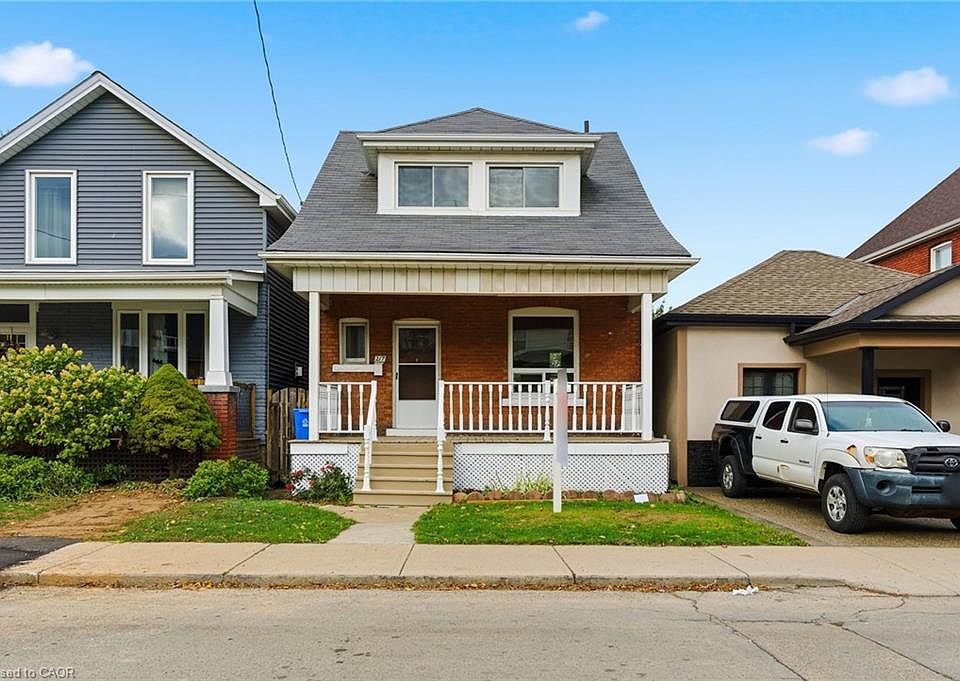 Welcome to this gem in the heart of Hamilton! This delightful 1.5-storey detached character home offers 3 bedrooms, 1.5 bathrooms. Bursting with charm and possibilities. From the moment you step onto the cute front porch, you’ll feel the good vibes.Think warm hardwood floors, rich original wood trim, and a cozy fireplace that makes the living room extra inviting. The sun-filled kitchen retains its classic cabinetry and farmhouse-style sink—ready for your personal touch or full redesign. Upstairs, the spacious primary bedroom boasts sloped ceilings, a modern ceiling fan, and beautiful natural light. A main floor powder room and full upper bath add convenience. Located in an evolving pocket of Hamilton, this starter home is ideal for first-time buyers or those seeking an investment opportunity in a walkable, transit-friendly location close to parks, schools, and downtown amenities.