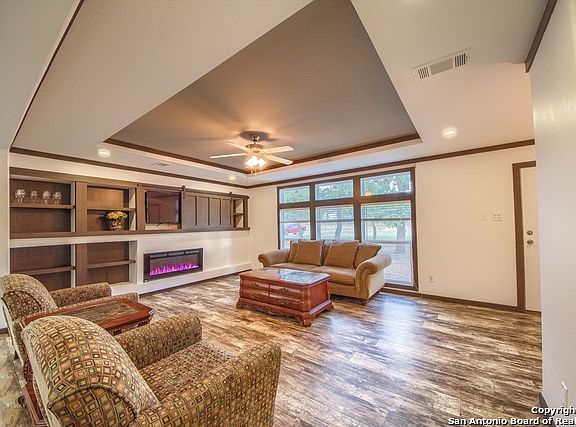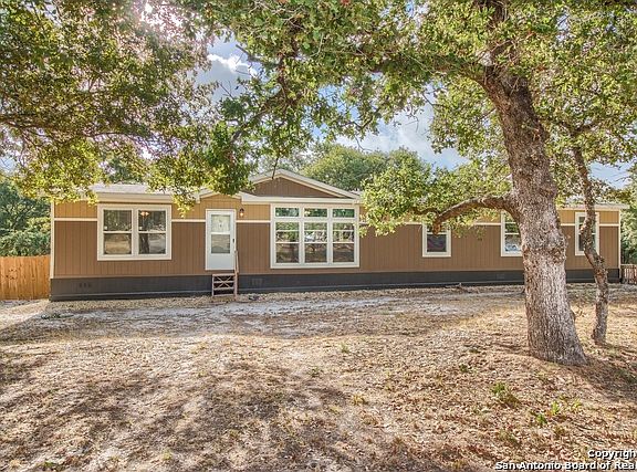 Rare find in this price range!! Move in ready!! Immaculate manufactured home on a beautifully treed 1 acre lot. 4 bedroom 2 bathroom highly desired open/split floor plan with numerous upgrades and extra features to include an office/study hallway nook, island kitchen with extended breakfast bar, expansive custom built cabinets, walk in pantry, living room tray ceiling, master suite and much more!! Peaceful piece of property in the country, but still conveniently located to San Antonio. LVISD!! A MUST SEE!!