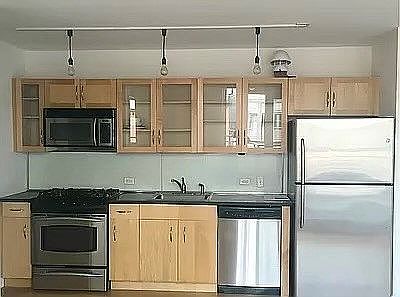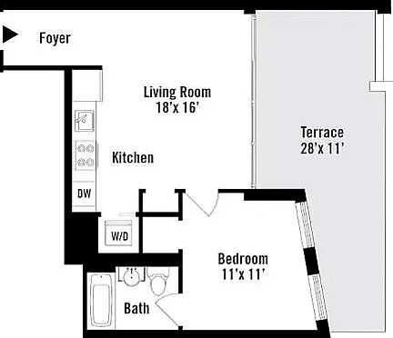 GREAT OUTDOOR SPACE! This bright and sun-filled apartment feels modern and sleek with its open layout and wall of glass opening to the large private terrace. The open kitchen offers full-sized stainless appliances while the bath has subway tile and marble floors. The private terrace is very large, with room for a table and outdoor seating. The apartment has washer/dryer, zoned heat and air and video intercom.