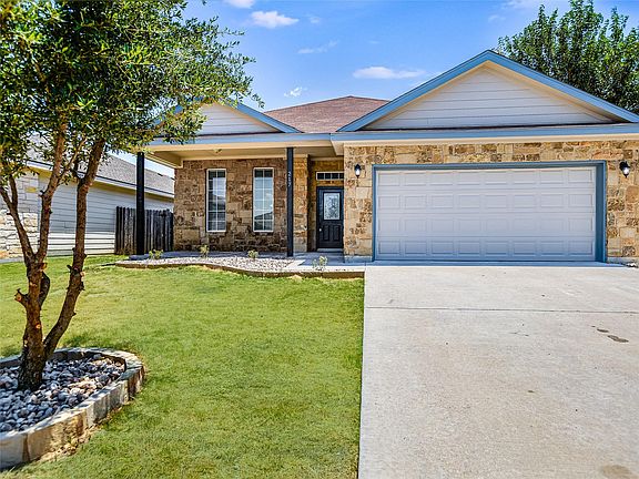 Turnkey, single-story, fully renovated 3-bedroom home with all appliances included! Step into an inviting oversized living room featuring luxury vinyl plank flooring that extends through the living area and hallway. The open-concept kitchen boasts granite countertops, a pantry, stainless steel appliances (including the refrigerator), and a cozy breakfast area. All three bedrooms are generously sized and include carpet and ceiling fans. The primary suite offers a private retreat with a double vanity, soaking tub, separate walk-in shower, and spacious walk-in closet. Additional highlights include a laundry room with washer and dryer, a two-car garage with opener, and a fenced backyard. Enjoy neighborhood amenities such as a community pool, parks, basketball courts, and common areas. Conveniently located with easy access to IH-35, close to SH-130, and just minutes from shopping and dining in Georgetown and Round Rock.