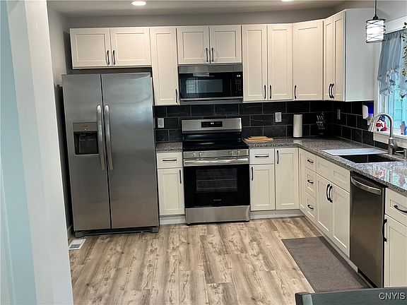 Now leasing 3 Bedroom 1 1.2 bath home in Camillus. This beautifully remodeled home is fully furnished with all modern furnishings. The large Kitchen has all stainless-steel appliances. and it directly comments to the Livingroom and Dining room with a slider that leads to the private back yard. The yard has a sitting area with a grill for outdoor entertaining. The entire home has been renovated. Washer and dryer are in the basement. We are looking for a 1-year lease. This stylish and turnkey residence has a large driveway for off street parking.