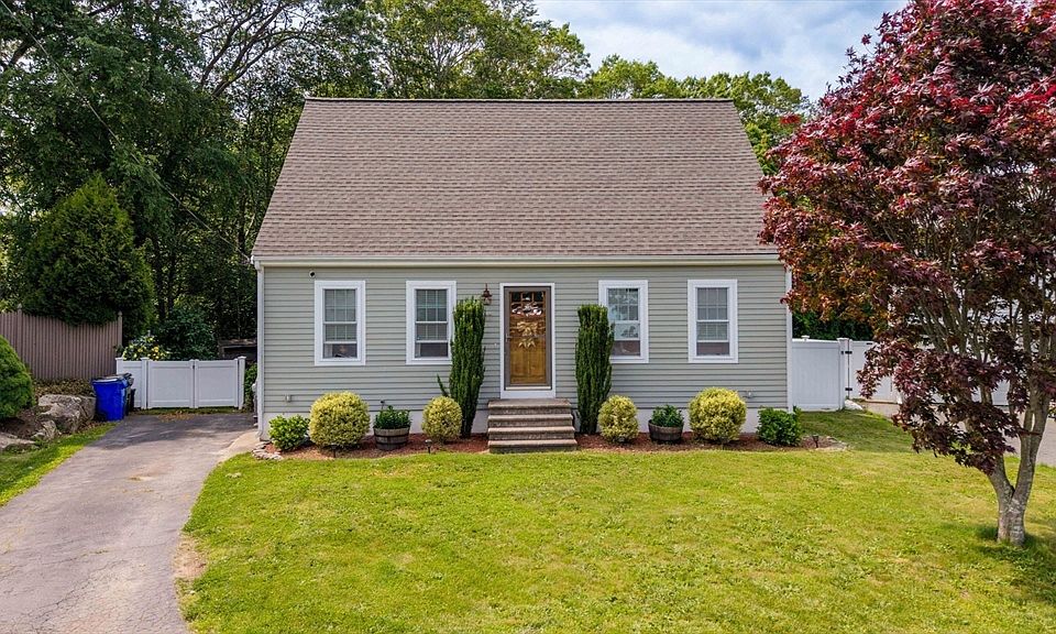 Nestled on a cul-de-sac, less than 5 minutes from the T, with quick access to Rt. 24 & I-195, close to trails in the Fall River/Freetown State Forest, and near a top-rated elementary school. This charming Cape features hardwood and tile floors throughout, a high-pitched roof, and a 1st floor bedroom with a bonus office (not in sq. ft.). The partially finished basement is plumbed for a full bath—just add a sink and walls! Additional highlights include: 3 heating zones, recent air sealing, newer fenced in backyard, and a stylish kitchen with a new island, gas range, dishwasher, and overhead lighting. The first-floor bathroom has been updated with marble sink, vanity, and lighting. Move-in ready with updates throughout, this house is ready for its new owners to love with all kitchen appliances and washer & dryer included in sale. Open house Saturday 11:00-1:00