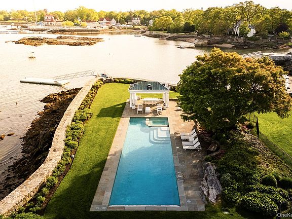 The amenity offering rivals the world’s most exclusive retreats: a private spa wing with massage room, steam room, and sauna; a fitness studio, billiards room, game room, and pet spa. Expansive terraces and covered porches frame the meticulously landscaped grounds, leading to a luxury pool, pool house, and deep-water dock—an extraordinary feature offering direct access to the Sound and beyond.