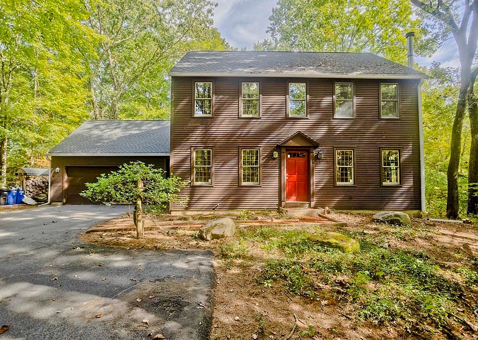 Nestled on nearly 1.3 private, wooded acres in a highly sought-after Longmeadow neighborhood, this beautifully updated Colonial offers charm, space, and modern comfort. Wide plank pine floors run throughout and have been freshly refinished.The open-concept kitchen flows into a dining room featuring a breathtaking fireplace and wood beam accents. French doors and abundant windows fill the home with natural light. The cozy living room boasts a charming wood stove—perfect for New England winters. With 3 bedrooms, 2.5 baths, and a partially finished basement, there’s plenty of living and storage space. Enjoy two spacious decks for entertaining, plus a poured concrete slab ready for a future hot tub. The attached two-car garage features soaring ceilings, ample storage, and an electric car charger. With land, privacy, and thoughtful updates, this home is a rare Longmeadow gem!