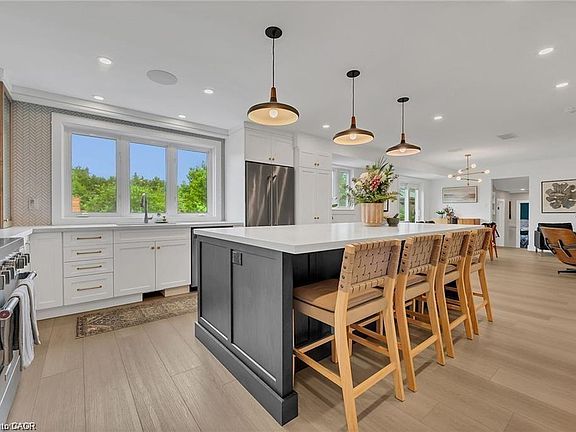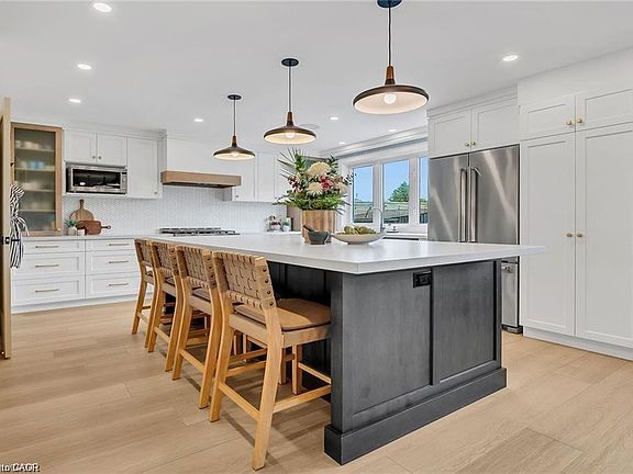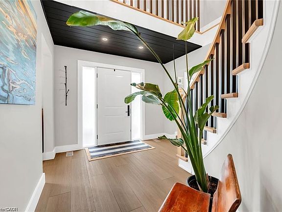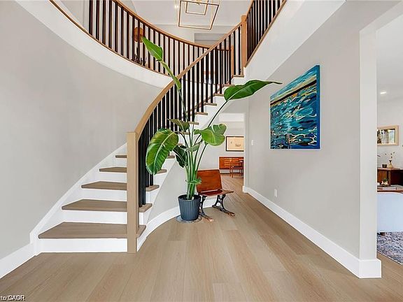 Welcome to 217 Jones Road—an extraordinary residence nestled in the prestigious and tranquil Fruitland Road neighbourhood of Stoney Creek. Set on a rare, fully fenced approx. 82.22’ x 200.42’ lot, home offers a peaceful, private retreat with exceptional outdoor space. Whether you envision entertaining on a grand scale, cultivating your own garden of fresh vegetables & fruit trees, or simply creating a backyard haven for family fun & relaxation. With over $400,000 in premium renovations, this meticulously redesigned home delivers refined living. The main flr features a beautifully appointed front office ideal for professionals, a stunning staircase centerpiece, a private wing with a bedrm—perfect for guests, in-laws, or multigenerational needs. Upstairs you’ll find 3 spacious bedrms, including a luxurious primary suite with spa-inspired 4-piece ensuite, along with the added convenience of bedrm-level laundry. The fully finished basement includes a 5th bedrm, 3-piece bathrm and is built on a core slab floor system, providing both acoustic privacy and the infrastructure for a potential self-contained in-law or income suite with separate access. Enjoy parking for 6+ cars in the expansive driveway plus a double garage. Enjoy the convenience of being just minutes from major retailers like Costco and Starbucks, boutique shopping, top dining spots, and all essential services. Easy connections to QEW, Red Hill Parkway, and local transit, making travel into Hamilton, Niagara, or the GTA smooth and efficient. For those who value lifestyle, the area is a gateway to Niagara wine country, farm-to-table markets, and seasonal fruit stands, all just a short drive away. Nearby conservation areas, scenic hiking trails, and access to Lake Ontario’s waterfront, perfect for weekend activities. Highly rated schools, community centres, & beautiful parks, & it’s easy to see why this location checks every box for families, professionals, and anyone seeking a balanced, enriched way of life.