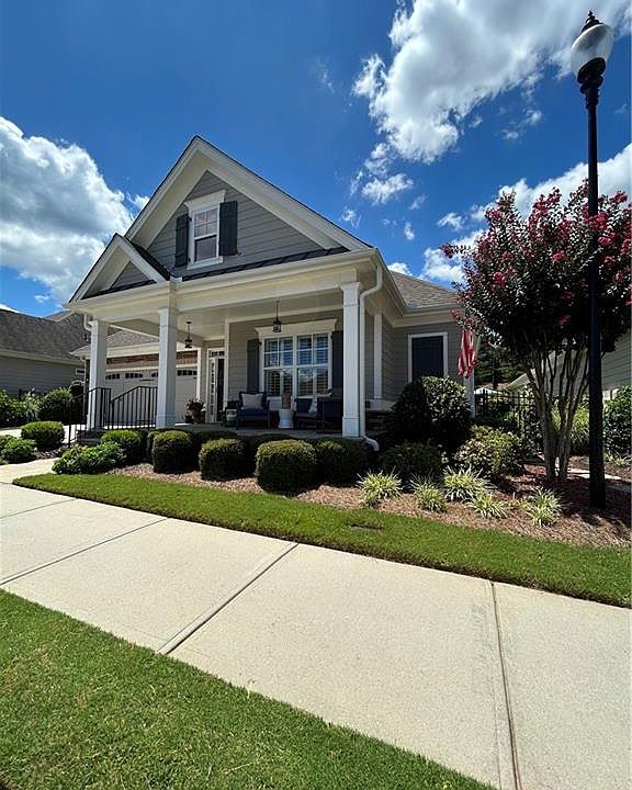 Welcome home, where the community is just beautiful and the living is easy! Tucked away in the most serene setting. Surrounded by established landscapes, this gem is sparkling and ready for a new owner. Built by one of the area's most respected builders, the Carson plan, by Windsong Properties It’s, is the best floor plan for family, guests and even working from home. The facade is deceiving. What appears to be a quaint little cottage truly is such a spacious home. Three bedrooms, each with a full ensuite bath. One is front of the home, one in the upper level and the primary suite has an amazing bathroom and his and her custom closets is nestled in the back. A true retreat away from the rest. The heart of the home is a gorgeous kitchen overlooking the large four-season room and beautifully landscaped custom courtyard, complete with a lovely stone floor, extensive landscaping. Also seen from the kitchen are the open dining and fireside great room with large picture windows on three sides. The owner customized the master bedroom closet in the home, and when you see the PANTRY, you will be done, sold, writing up an offer! Natural light floods this home, and it is surrounded by lush, green plants out every window. In addition to the three bedrooms, an office on the main floor and upstairs you will find a bonus room with full bath. The attic is also upstairs (no ladder involved), and has a full floor, so storage is ample. The garage is oversized with added storage, custom cabinets and a granite floor. The residence features primarily single-level living, offering multiple areas where one can have coffee in the morning or a cocktail in the evening. The four-season garden room is also a great place to relax, or you can go out to the front porch where you can say hello to your many neighbors out walking their pups. The community was designed for fun, with a gorgeous, centralized club house overlooking a beautiful pond with a fountain, surrounded by walking trails. The clubhouse features casual gathering spaces, both inside and out, a fitness room with gym equipment, a catering kitchen and a large dining area, covered deck and patio and a fire pit! Whether you prefer quiet solitary walks or lively meetings for cards, mahjong, book club, poker night, ladies’ lunches, or Friday evening happy hour, you will feel at home right away in this gated community. The location is fabulous, with great Cherokee County taxes, yet very easy access to downtown Woodstock, Roswell, Marietta, I75 or GA400, even Alpharetta! You will fall in love with everything about this home.