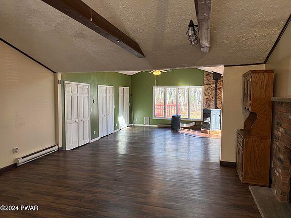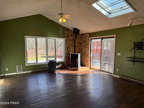 Charming and cozy 3-bedroom, 1-bath home on a spacious double lot in Marcel Lake Estates. This home offers an inviting open floor plan with new laminate flooring throughout. The entry foyer/laundry room opens into a kitchen seamlessly connected to the dining area and living room. The dining room features a wood burning fireplace and the living room has a pristine pellet stove that efficiently heats most of the home. Three bedrooms and one full bath complete the interior. Outside, the fenced backyard is perfect for pets and includes a delightful garden area. Two sheds provide ample storage for tools and yard equipment. Updates include a newer roof and vapor barrier and beams in the crawl space. Enjoy extra privacy with an additional lot and direct access to state game lands. Located in an amenity-rich community with a pool, clubhouse, and lake rights to Lake Renee for fishing and boating. Conveniently located near the Dingmans Bridge, offering quick and easy access to New Jersey, and just minutes from the historic town of Milford. Only 30 minutes to I-80, providing a smooth commute to NYC. This home is ideally located near a variety of beautiful outdoor destinations, including Childs Park, Raymondskill Falls, Bushkill Falls, and the Delaware River--perfect for outdoor enthusiasts and nature lovers alike.