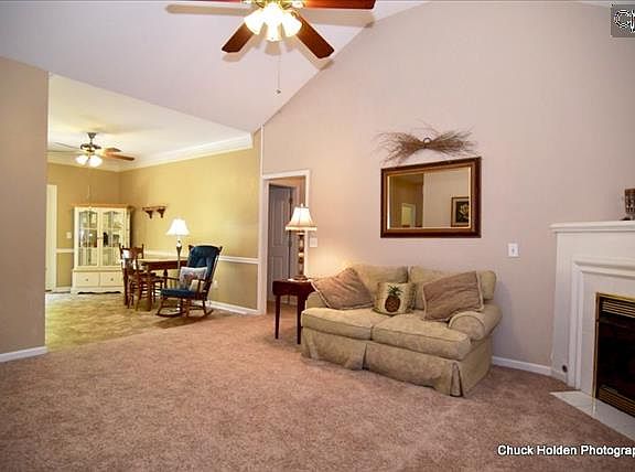 Patio home lifestyle without the monthly fees. One story, spacious, neutral paint, new carpet, & clean as a whistle! Plenty of room to host your loved ones for the holidays in the family room, complete w/ gas log fireplace. Prepare your family's favorite dishes in this bright and inviting kitchen boasting glass front cabinets, new vinyl floor, plenty of counter space, and eat-in area. Retreat to your master suite with private bath, relax in the whirlpool tub, has his/her closets and double vanity. 3rd bedroom is currently used as dining room, but has French doors and closet. Find your peace on the patio overlooking the fenced back yard backing up to wooded area. Very close to walking trails. Take advantage of the Harbison recreation center!