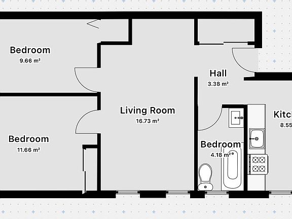 Equal sized bedroomsCloset and windowsHardwood floorsSeparate kitchen