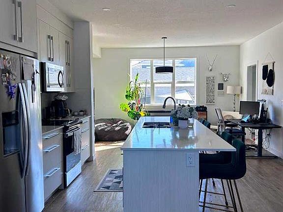 Beautifully maintained, 3 bed and 2.5 bath, like-new townhouse, with NO CONDO FEES, in Dawson Landing, very desirable area of Chestermere. This conveniently located home offers 1,560 sq ft of modern living, with an open-concept main floor, featuring a bright living, dining area, centrally located kitchen with a large kitchen island, Elegant quartz countertops, stainless steel appliances, lots of cabinetry to meet all your storage needs. 2-pc powder room, front and back entry closets completes main floor. Upstairs, you’ll find a spacious primary suite with a 4-piece ensuite with double vanity and walk-in closet, 2 additional bedrooms and another 4 pc bathroom.. The unfinished basement is ready for your creativity, currently being used as gym, storage needs. Fully landscaped front and backyard, fully fenced with double detached garage in the back with key-less entry gives you all amenities of a full house with a lower price tag. This home is located near shopping, parks, walkways and yet away from noisy main roads, makes it very desirable for living thus making very attractive rentals. Great investment opportunity in declining interest rate environment. Call your favorite realtor to book a showing!!