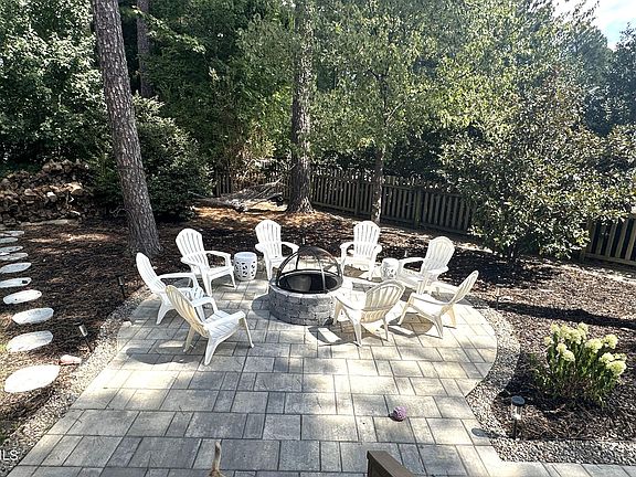 Welcome to this beautifully updated custom home featuring an open-landscape floor plan with two primary bedroom suites, located on the first and second floors, providing flexibility for your extended family and guests. With a full renovation of the first floor, many updates upstairs, and a newly landscaped backyard, this home offers exceptional indoor-outdoor living for everyone. Located in the highly sought after Prestonwood neighborhood, this home has been re-designed to provide both comfortable and highly functional spaces for the entire family. The new kitchen showcases the latest design elements, with tall pantry drawer cabinets, premium Viking appliances, a large eat-in island that seats 5, and an attached dining space that accommodates a full dining table which is bathed in natural light from its surrounding windows. Connected to the outdoor deck and the professionally landscaped patio area with firepit, this dream kitchen provides a great space for family gatherings and entertaining friends. The re-design of this home continues throughout the first floor, with a newly created home office space, newly added laundry room with separate mud-room, the addition of custom cabinetry in the living room. And, you will love the new hardwood floors throughout. Upstairs you will find updated bathrooms, new carpeting, and large bedrooms all with walk-in closets. The large bonus room, also with walk-ins, creates a 5th bedroom or can be used for a wide range of activities. With its spacious, private backyard, and quiet neighborhood street location, this home, provides a private oasis for any owner. Its great location also makes it conveniently located to shopping, restaurants, the airport and RTP. This home has it all.