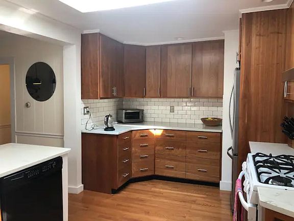 Beautifully furnished, modern 2 bedroom, 1.5 bathroom home on a quiet block in Downtown Ithaca. Kitchen features custom built cabinetry, large single bay sink, new dishwasher, skylight and quartz countertops. Living room has a very comfortable west elm couch w/chaise lounge, large flat screen TV, wood stove w/bose surround sound system. Downstairs side room has a desk and monitor for work from home situations and great natural lighting. Downstairs 1/2 bath has a stacked washer/dryer. Upstairs has 2 bedrooms and full size bath with radiant floor heating. Primary bedroom has a ultra comfortable king size memory foam gel bed, as well as armoire, dresser and shelving. Second bedroom has full size bed, closet and infrared sauna. Entire house runs off an on-demand hot water heater which means you'll never run out of hot water! This home is set up for cozy relaxation. Utilities and internet included. Outdoor patio is shared with studio apartment. Off-street parking (paved driveway) and basement storage space available. Open to short term rental options. 12 month lease, open to short term rental options. Utilities and internet included. Pets considered on a per case basis. No smoking. Off-street parking via paved driveway.