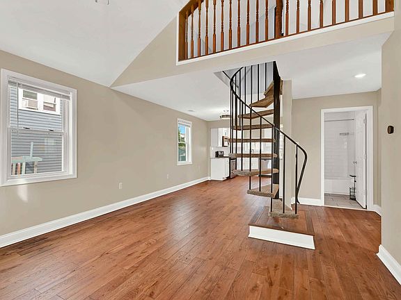 Discover comfort and modern charm in this detached home offering open, airy living with versatile spaces both inside and out. The inviting living area boasts wood flooring, high ceilings, neutral tones, abundant natural light, and a striking spiral staircase leading to a spacious loft with wall-to-wall carpeting, perfect as an office, lounge, or creative retreat.