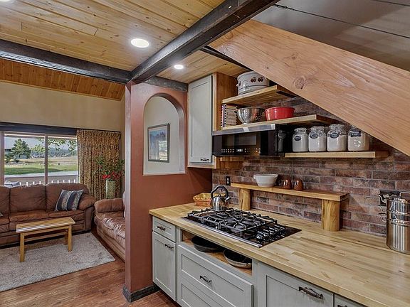 Hideaway Cove Condo. This warmly inviting lakeside nest is freshly remodeled and overflowing with FULL custom features, contagious mountain charm and unlockable views of the north range San Juan Mountain peaks. Lovingly hand crafted in every detail, you'll be hard pressed to find anything else quite like it in our area. Study the photos three or four times and you're still likely to miss some of the clever, hand-crafted features that makes this cutie so very special. Just inside the covered entry you'll look straight through the hallway and notice that there is a wonderful greenspace and lake cove to the back. Yes, the stairs have been designed to allow a maximum amount of light through, including some unique cable railings, light, natural wood steps and an abundance of custom lighting fixtures throughout the space. The entry hallway offers a ski-cubby, newly installed engineered flooring and entry closet. Step down into the full custom kitchen and invest some time surveying the brilliant use of space and lack of clutter. The centerpiece is a large island with built in seating for three, a hearty butcher-block countertop with hidden media-port tower, Kraus underslung sink, oven island with butcher block, bronze Koehler water nozzle and a stunning gas cooktop, also mounted on butcher block countertop, adorned with an array of custom shelving and cabinetry above, amid a beautiful brick veneer backsplash wall. A theme of multiple arched openings also serves to maximize the sunshine and yummy smells embracing the living space. Beyond the island is an imaginative built in bar, made of chunky, repurposed wood and backed by a large mirror which doubles the sense of space in the room. More custom cabinetry for storage, a wine fridge, beverage station and coffee bar round out that side of the kitchen. "Fan-say!" Look up, custom T&G ceiling, look around, more custom brick, look back, a sweet pantry and LG fridge. Watch for beetle-kill pine and aspen tongue and groove amid the dark stained open beams throughout the condo. The unique touches are unending. Up the hallway and you'll find a built-in custom cabinet, HGTV-quality cabin-bathroom with upgrades galore, custom tile, pine plank and vessel basin and "no-rushing" appeal. A full-size stackable washer and dryer are just outside the downstairs master bedroom. Now, the master bedroom is replete with a large closet accessed through plank bifold doors and barn slider plus a second closet which is home to a modern tankless hot water heater. Step back through the open concept kitchen and discover an intimate living room, which is home to a very special Acme free-standing, natural gas fired porcelain stove. It is three sides glass and a work of art called "Tree of Life." It has a remote control and fan to spread the heat. Above the living room is a wall of handmade decorative spindle-planks, adorning the upstairs loft. This open space lends volume to the cozy room, oh, and the curtains close via remote control. Groovy baby! Glance out huge array of windows to take in the fountain and manicured green space (warm months), and Pinon Lake cove, the only grouping of lily pads this Realtor knows of in the area and ALL backdropped by the stunning North Range and Weminuche Wilderness peaks, to the north. Breathtaking! Yes, the covered deck may become your favorite space. The park and firepit, just beyond the lake, is a gathering place for other homeowners and their guests. Back inside, notice the quality feel of the steel handrail that leads to the loft bedroom and bath. Oh, now this area is extra special. Fresh engineered flooring, built in antique armoire with leaded glass doors, new Koehler soaking tub in a cedar surround, new skylight with escape egress, custom vanity and mirrors, upgraded fan and lighting, cedar walls & zoomie tile shower.