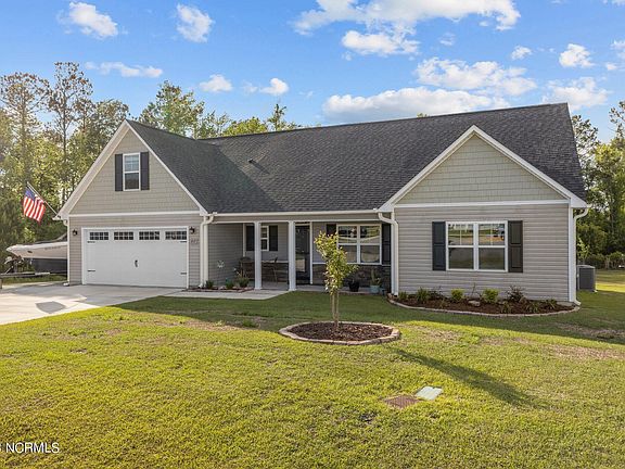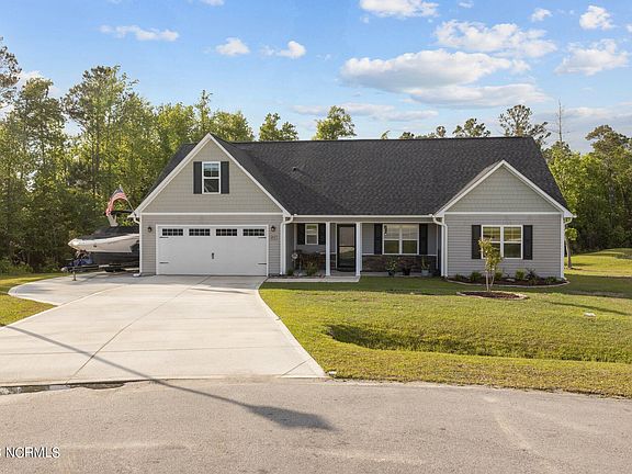Welcome to Heron Watch at Queen's Creek! Built in 2021 and sitting on over an acre of land, this home is located just minutes from historic downtown Swansboro, Marine Corps Base Camp Lejeune, and North Carolina's Crystal Coast. The interior of the house is spacious and bright, with natural light pouring in from large windows throughout. The kitchen is fully equipped with stainless steel appliances and offers ample counter space for meal preparation, while the living room is perfect for entertaining guests or just relaxing after a long day. The home features three comfortably sized bedrooms, including a master bedroom with an en-suite bathroom. There are two walk-in closets in the master en-suite! All 3 bedrooms plus the bonus room have plush carpeting and plenty of closet space. The backyard is perfect for outdoor entertaining, with plenty of space for barbecuing and relaxing on a warm summer day. The driveway was extended to provide extra room and a generator plug was installed for those who wish to install a whole-house generator in the future! The neighborhood of Heron Watch at Queen's Creek is ideal for those looking for easy access to shopping, parks, and recreational areas, while still enjoying the tranquility of coastal suburban living.