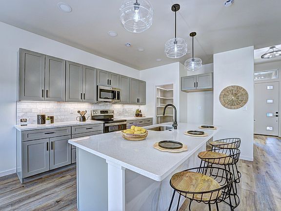 This BOA Builders contemporary-style home features 3 bedrooms, 2 bathrooms, a 2-car garage, and spans 1569 sq ft The low-maintenance exterior boasts a stylish two-tone stucco finish, with front yard landscaping expertly installed and maintained by the HOA. Inside, trendy light fixtures and painted accent walls enhance the 9 ft tall ceilings. Security is paramount, thanks to smart technology encompassing high-speed fiber connectivity, smart thermostats, garage doors, and Ring doorbells. These homes leave nothing to be desired, offering quartz countertops, ample natural light through large windows, open floor plans, fully tiled shower enclosures, energy-efficient LED lighting, and soft-close cabinets. Behind the scenes, it is Energy Star certified, DOE Zero Energy Ready, has a termite treatment, and a passive radon system, ensuring every detail is accounted for. The list of amenities is extensive. Home will be complete July 12th, 2024.