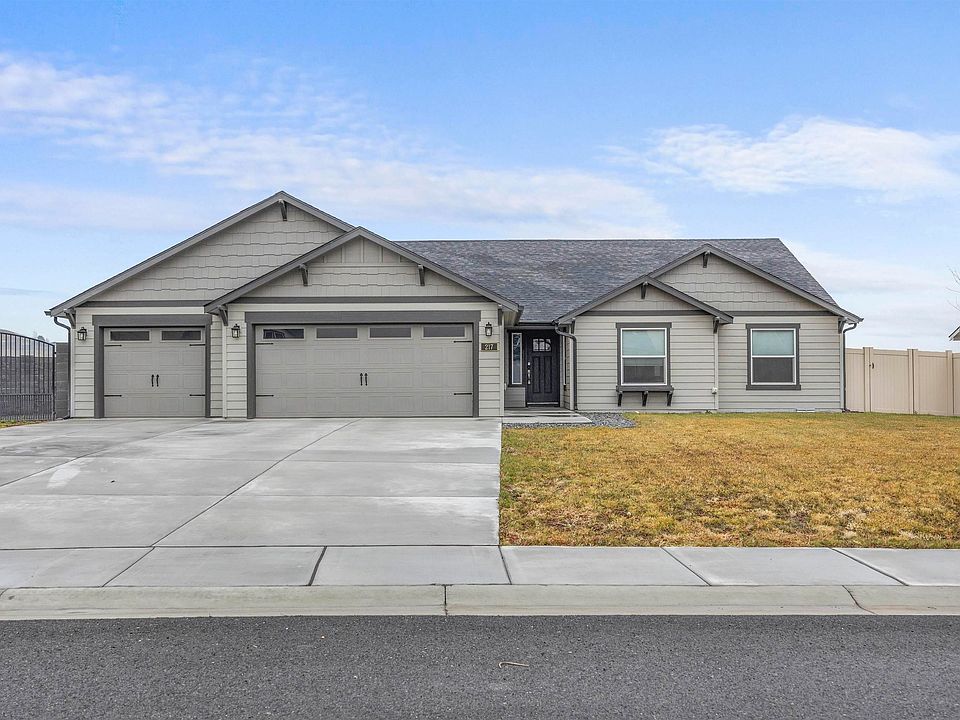 MLS# 288945 Nestled in the heart of Eastern Washington wine country, this barely-lived-in Bella Vista home sits on a spacious 1/3-acre lot and offers the perfect blend of comfort, style, and modern convenience. Built in 2022, this single-level gem features 1,805 sq ft of thoughtfully designed living space with 3 bedrooms and 3 bathrooms—including two private primary suites. Designed with entertaining in mind, the home showcases a bright and open layout with vaulted ceilings, expansive windows that fill the space with natural light, and a cozy fireplace ideal for crisp evenings and the upcoming holiday season. The gourmet kitchen provides an abundance of counter and serving space, complete with a large island, granite countertops, full tile backsplash, white cabinetry, stainless steel appliances, and a generous walk-in pantry. An adjacent dining area offers easy access to the covered patio for seamless indoor-outdoor living. The spacious main suite rests beneath vaulted ceilings and features a luxurious bathroom and oversized closet. A second primary suite provides excellent flexibility for multigenerational living or hosting long-term guests. Outside, the property continues to impress. The backyard is fully enclosed with a beautiful block fence for added privacy and includes a large covered patio plus an extended uncovered area ideal for year-round enjoyment. Additional highlights include RV parking, low-maintenance landscaping, mountain views, no direct rear neighbors, and an EV-ready 50-amp breaker in the 3-car garage. Located in a peaceful Prosser cul-de-sac, this home offers the charm of small-town living without sacrificing convenience—close to shopping, art galleries, award-winning wineries, and an emerging brewery scene, all surrounded by the scenic beauty of wine country.