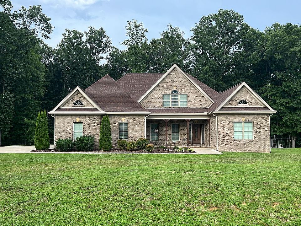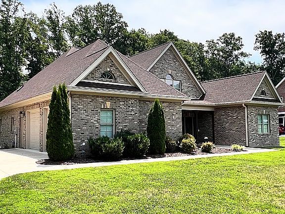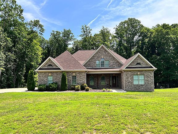 Arched keystones and multiple gables gracefully adorn the exterior of this one-story modern ranch, brick home. Coffered ceilings in the kitchen, great room, and dining room of this customized home as well as a cathedral ceiling in the master bedroom create architectural elegance and spaciousness. The master suite, situated for privacy, boasts a sizable walk-in closet with lots of built-in storage. In the master bath, a makeup counter flanked by double vanities, a generous walk-in shower with seating and a dual shower system, and a skylight create a serene space to start your day. Located off the master bath, the laundry room features ample storage, utility sink, and a hidden ironing center. Secondary bedrooms are located on the other side of the house and share a full bathroom. Beautiful columns define the dining room from the foyer and hallway of the house. The luxury kitchen, featuring a full-function island with plenty of prep space, farmhouse sink, storage, and bar seating, flows into the breakfast area, keeping room, and great room, creating a large central space. A screen porch and deck provide comfortable areas for relaxing or entertaining. A walk-in attic that spans the majority of the 1st floor square footage can be transformed for additional living space.