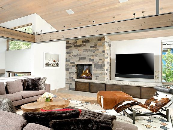 Warm and inviting Swiss Chalet awaits, just outside the downtown core. The split level design and open floor plan incorporates three living levels and three bedroom suites. Glimpse Independence Pass and the glades of Aspen Mountain from the sunny outdoor entertainment area off the living /dining rooms. Vaulted wood ceilings, stacked stone fireplace and gentle wood tones warm the more contemporary elements of the home even on the most bitter winter days. Baulthaup kitchen is a work of art with glass cabinetry, Caesarstone counter tops and floor to ceiling wine fridge. Private Master Suite is on the top level with gas fireplaces in the bedroom and at the jetted soaking tub. STR Permit #: 083260 Occupancy: 6
