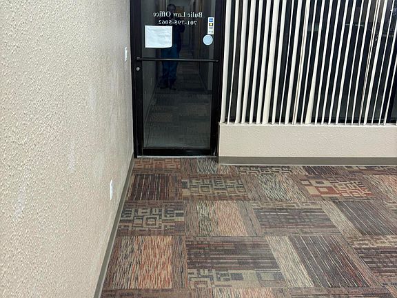 Ground-level office space in Downtown Grand Forks - includes 4 office spaces, reception area, shared kitchen, and bath facilities (additional 262 sq ft); cleaning service provided for shared space; utilities included. Off-street parking available. Three-year lease.