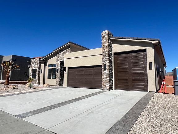 Serene neighborhood with Red Mountain view from the patio, and gorgeous sunsets in the evening. The modern lines, open floor plan, and single level living makes this the perfect forever home. The open floor plan and fireplace create a lovely space for entertaining. The 36.5 ft deep RV garage has so many possibilities: store an RV, side by side, trailor, or use the space for a work-shop! There is also ample room for RV parking on the side. Quartz countertops, warm knotty alder cabinets, and built-in GE CAFE appliances enhance the kitchen. Close to hiking and biking trails, Snow Canyon State Park, Tuacahn Amphitheatre, and Gunlock Reservoir.