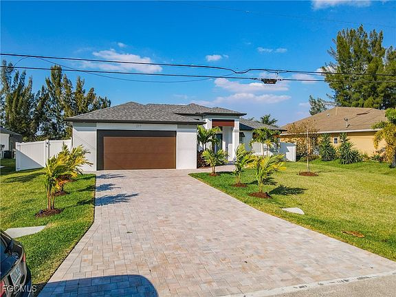 Ever dreamed of owning a waterfront home in SW Cape Coral? This stunning 4/3 pool home is equipped with all the modern amenities and luxurious features you could desire. Step inside, you'll be captivated by the fine touches and attention to detail. The kitchen boasts European-style cabinets and exquisite quartz countertops, creating a sleek and sophisticated atmosphere. 12-foot ceilings add an extra touch of grandeur, while the tile plank flooring throughout the home exudes elegance. Hurricane impact windows, ensuring your peace of mind. Plantation shutters add a touch of classic charm to every room. A built-in home office, allowing you to separate work and personal life. Built-in wet bar and modern entertainment center provide the perfect setting for hosting guests. Custom ceiling fans are installed throughout the home, ensuring optimal airflow. The heated saltwater pool offers a refreshing oasis for relaxation and enjoyment. One highlight of the property is the concrete dock, which overlooking the canal. Imagine sipping your morning coffee while taking in the serene beauty of the water. Don't miss out on the opportunity to make this dream home yours.