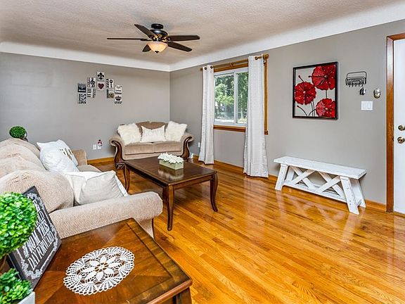 Take a step inside this bright and welcoming 1950's ranch in the middle of charming uptown Ankeny! Beautifully refinished original hardwood floors throughout the main living area, formal dining (sliding doors to the large deck) and both bedrooms. The kitchen is spacious with tile floors, stainless steel appliances and a buffet providing extra storage and counter space! In the finished lower level you will find a large family room with an area that could be used as an office or a nonconforming 3rd bedroom. The laundry room is separated off from the main LL family room area and includes a utility sink and ample storage - washer and dryer included! Outside you will find a well manicured fenced yard and detached over sized 2 stall garage. Make this adorable home yours today!