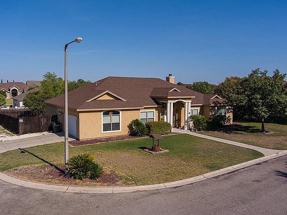 Buena Vista Texas Mediterranean Style Home. Featuring 4 Bedrooms, 3 Bath, Split-Bedroom Plan w/ an Open Concept, Formal Living, Formal Dinning, Spectacular Family Den Wired for Surround Sound & a Fireplace for those Cold Winter Storms. Kitchen w/ very nice updates & recent New Stainless Steal Appliances overlooks Formal Dinning, Breakfast Table area and Family Den. You are sure to enjoy the oversized Master Bedroom W/ Large Bathroom Suite, His & Her Vanity, Jet Tub & Shower. Your family will enjoy the Large Bedrooms and large Windows that bring in the natural light. The Home is nestled on a Large Corner Lot, Side Entry Garage, Privacy Fence, a Large Covered Pergola Patio to entertain Family & Friends.