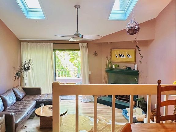 Unfurnished split level two bedroom two bath condo on Hewletts Creek, back deck faces the creek. Unit has vaulted ceilings, skylights, fireplace, large upstairs master, storage unit, two parking spaces in front. Amenities include pool, gym, clubhouse, tennis, basketball.