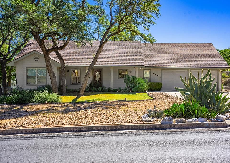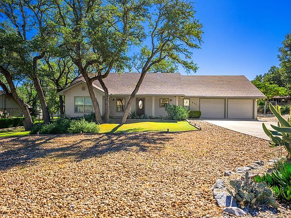 Experience the charm of Hill Country living in this beautiful one-story home, nestled in the established Greenwood Forest neighborhood. Built with durable metal stud construction by Jenschke Builders, Inc., this residence combines timeless craftsmanship and comfort. Enjoy an open-concept layout that seamlessly connects the kitchen, dining area, and spacious living room, centered around a standing wood-burning fireplace—perfect for cozy mornings or relaxed evenings. The primary suite offers privacy and opens onto a covered patio with an inviting hot tub. It features a large walk-in closet and a walk-in shower. Two additional bedrooms provide ideal space for guests, a home office, or hobbies. Enjoy the convenience of a roomy pantry and a large utility area that make daily living effortless. Outdoors, enjoy a covered front porch ideal for plants and seasonal dcor, along with a xeriscape front yard accented by mature trees. The landscaped backyard and covered patio provide the perfect retreat to relax and take in the Hill Country breeze. This home embodies the warmth, charm, and easy-living spirit of the Hill Country lifestyle. Schedule your private showing today!