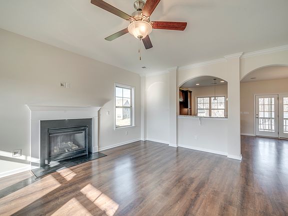 The Langford plan offers a beautiful open concept home boasting beautiful LVP flooring, a gas fire place, downstairs office space, kitchen furnished with stainless steel GE appliances with gas range, as well as tile backsplash and granite countertops. The upstairs has four bedrooms, two bathrooms, and the master bedroom has a huge walk-in closet and a seating area. The master bath has a separate tub and shower combo and is perfect for your next home.