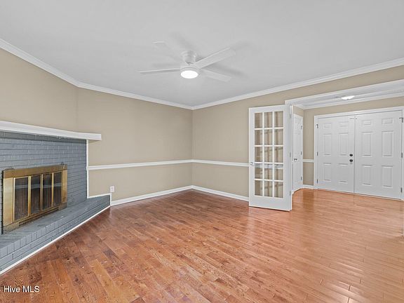 Charming and classic brick ranch nestled on a spacious lot in the sought-after Carolina Pines neighborhood. This inviting residence features an open-concept layout that seamlessly connects the living area and kitchen, creating an ideal space for entertaining. The kitchen boasts bright white cabinetry, stylish tile backsplash, sleek granite countertops, a convenient pantry, and a contrasting dark-toned island. The elegant dining room offers a welcoming spot for gatherings, while the cozy family room complete with a fireplace, is perfect for chilly evenings. Both bathrooms have been tastefully updated for a modern touch. Includes a one-car garage for added convenience.