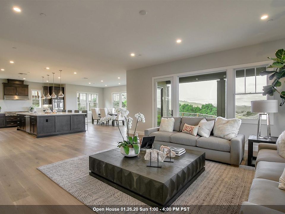 Amazing new home with great views and convenient location! This beautiful home is ready for you to move-in and features a versatile floorplan with "great room", extra den, loft and a three car garage. The kitchen boasts custom cabinetry, oversized island, butler's pantry and high-end appliances. The family room is adjacent to the kitchen and accented by a modern fireplace. There is a full suite on the main level of the house as well as the laundry room. The luxurious master suite features a spacious bedroom, extra den, large walk-in closet and a beautiful bathroom with a freestanding tub, shower and double vanity. You will enjoy the amazing views of Mt.Diablo and surrounding hills. Welcome to Moraga, an outstanding community with it's top rated public schools, hiking & biking trails, public parks and everybody's favorite Sunday Farmer's Market.