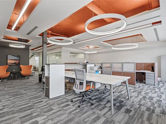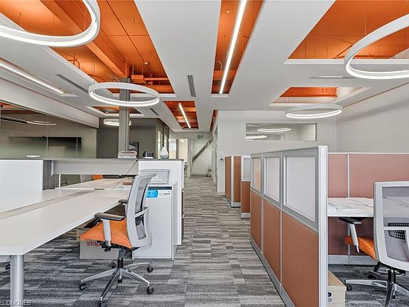 Professionally designed, premium office! 2,604 sqft. This office features 14ft ceilings, a full kitchen, bathrooms & shower. Elegant 290 sqft boardroom, w/smart blinds and designer lighting throughout! No expenses were spared on the design and build-out of this Office. Ready for your use! No medical permitted.