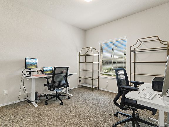 This 5 Bedroom two-story home offers a layout that feels open, balanced, and easy to live in. The spaces are well-proportioned, the natural light is generous, and the flow from room to room makes sense for both quiet evenings and busy days. At the center of the home is a spacious living room with high ceilings and large windows that bring in plenty of natural light. It opens directly to the kitchen and dining area, making it easy to stay connected whether you're relaxing or hosting. The kitchen features a large island with seating, a walk-in pantry, stainless steel appliances, 8-stage water filtration system, and a brand-new dishwasher. Downstairs, the spacious primary bedroom is tucked away for privacy and features large windows that fill the room with natural light and offers views of the backyard. The new wall trim adds a refined, subtle detail that enhances the space's character. The ensuite bathroom feels like a personal retreat with separate vanities providing ample space for two, a spacious walk-in shower finished with tile, and plenty of storage in the walk-in closet. A second bedroom on the main level adds flexibility and can serve as a mother in-law suite, office, or nursery. Upstairs, the game room sits at the center of the second floor, benefiting from the open layout and natural light that flows in from the stairwell and nearby windows. It's a spacious area that can easily accommodate a sectional, entertainment setup, or even a study zone. Three additional bedrooms and a full bath complete the upstairs layout, offering room for everyone to spread out. The backyard includes a covered patio and a wide-open lawn with room to relax or play. Located just minutes from HEB, Randolph Air Force Base, and nearby shopping and dining. This home offers the space, comfort, and features that make day-to-day living feel a little easier.
