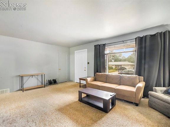 Welcome to this inviting 3-bedroom, 2-bath ranch-style home in Security, offering 1,582 sq. ft. of main-level living. This well-maintained home combines comfort and flexibility with plenty of living space both inside and out. Inside, you’ll find a spacious family room, a bright living room and a dedicated dining area with hardwood flooring and walk-out access to the covered back patio. The kitchen features tile flooring, natural wood cabinetry, and plenty of counter space, with easy flow into the dining and laundry rooms. The home offers three comfortable bedrooms on the main level, including a primary suite with attached bath, plus a flexible converted garage space that can function as a 4th bedroom, office, gym, or additional family room. The fully fenced backyard is ideal, featuring a covered patio for barbecues, pets, or play, along with two storage sheds for tools and gear. With no HOA or covenants, low taxes, and close proximity to military bases, Colorado Springs Airport, schools, and shopping, this property offers value and convenience.