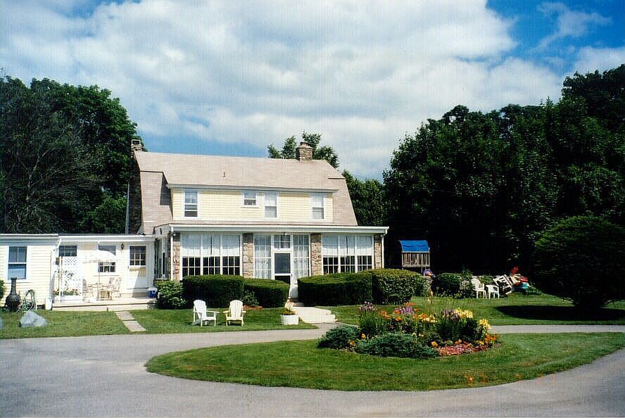 First floor has large (28 X30 sf) living room/dining area, eat in kitchen, a half bath, a laundry room, an office, a media room, and a sunroom overlooking 600 sf deck and 2 acre year yard. Second floor has four bedrooms and 2 full baths. House is on a private road at the top of a tree-lined driveway, surrounded by trees, At end of street is a community dock with ocean access.