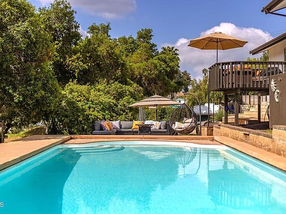 Welcome to your dream property nestled in the picturesque Ojai Valley! This stunning 4-bedroom, 2.5-bathroom retreat offers the perfect blend of tranquility and peace on a sprawling 1.74-acre parcel. As you drive up the gated driveway, a sense of exclusivity embraces you, promising a haven of privacy and comfort. Step inside, and you're greeted by an inviting open floor plan with great flow. Sunlight dances through the windows, highlighting the connection between indoor and outdoor spaces. This exquisite home features a captivating great room with an open-concept design, seamlessly integrating the dining, kitchen, and living areas, crowned by high ceilings and a cozy fireplace. With four bedrooms, including a primary suite, this home ensures everyone has their own space. A crystal-clear pool awaits, inviting you to take a refreshing dip. Unwind in the spa or bask in the California sun on the expansive flagstone patio. Nature enthusiasts will delight in the 1.74 acres of pure bliss, adorned with majestic oak trees that provide shade and a sense of tranquility. A small orchard adds a touch of countryside charm, and the nearby hiking trails promise endless adventures. And for those with equestrian passions, this property is a dream come true. Convenience meets luxury as this prime spot is strategically located just 15 minutes from the beach. Whether you're a beach lover or a mountain explorer, this home's prime location caters to every lifestyle!