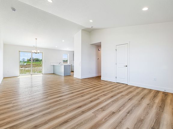 Designed with an expansive open concept integrating the great room, dining, and kitchen areas seamlessly. Unique kitchen layout and impressive vaulted ceiling set this home apart. Ideal for culinary enthusiasts, the kitchen boasts ample counter space and seating at the bar, perfect for gatherings. The main suite offers a luxurious walk-in closet and a private bathroom with a spacious walk-in shower. Two bedrooms are situated at the opposite end of the home, with a bathroom conveniently nestled between them.
