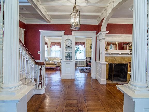 Located on a beautifully landscaped property close to Grove Park in the historic Montrose Park section of South Orange, this exquisite 12-room center hall shingle styled home with fabulous wrap-around porch, modern eat-in kitchen, four wood-burning fireplaces, six bedrooms (including a master suite) and 3.2 updated baths offers four levels of exceptional living space. Surrounded by lush green lawns, towering shade trees, perennial beds and decorative shrubbery, this fine home is only minutes from South Orange Village, the South Orange Community Center and Midtown Direct train service into Manhattan. The first level features a stunning formal entry hall with paneled wainscoting, winding formal staircase and elegant coffered ceiling; formal living room with marble fireplace and richly detailed millwork; spacious formal dining room with marble fireplace and two corner china cabinets; comfortable family room with paneled wainscoting, bayed wall and built-in bookshelves and cabinetry; spacious kitchen with raised panel cabinets, stainless steel appliances, separate breakfast area and butler’s pantry; powder room; and inner foyer. The second level offers the master suite (large bedroom with sitting area and fireplace, full private bath, sleeping porch and large walk-in closet/dressing room with extensive built-in storage); three additional bedrooms; full hall bath; laundry; and center foyer. Ideal for use as guest or au pair quarters, the third level includes bedrooms five and six; the office/study with two walls of built-in bookshelves; sitting room; full bath; and center foyer. The lower level accommodates the recreation room; laundry media room; foyer/hobby room; powder room; and two storage rooms. Ideal for kids of all ages, the property is deep and level and includes a stone patio and detached two-car garage.