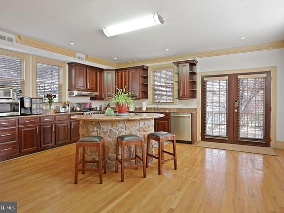 Expanded and updated 2.5 story detached with full improved basement. Open main level floorplan with living, dining, spacious eat-in kitchen with breakfast bar, powder room. Front porch, french doors overlook rear deck for relaxing and enjoying the beautifully landscaped yard. Middle level has 3 bedrooms, 2 full baths, lots of closets (rough-in for washer/dryer in hall closet). Upper level is suited for a family room or 4th bedroom with a full bath. Basement is finished as a rec/family room with full bath, rough-in for a wet bar or in-law setup. Rear storage room or use as office/workout area. Full sized washer and dryer will convey. Exit to exterior. The rear alley access parking pad will accommodate at least 2 full sized vehicles. Detached shed and plant boxes will convey. Dual zoned HVAC replaced 2021, HWH replaced 2020. Bluetooth intercom throughout. Gas cooking and heat. Freshly painted interior (white) offers a blank slate for your color design customization! Cinch 1-year home warranty provided. Short distance to Takoma red line subway, downtown Takoma Park dining and shopping.