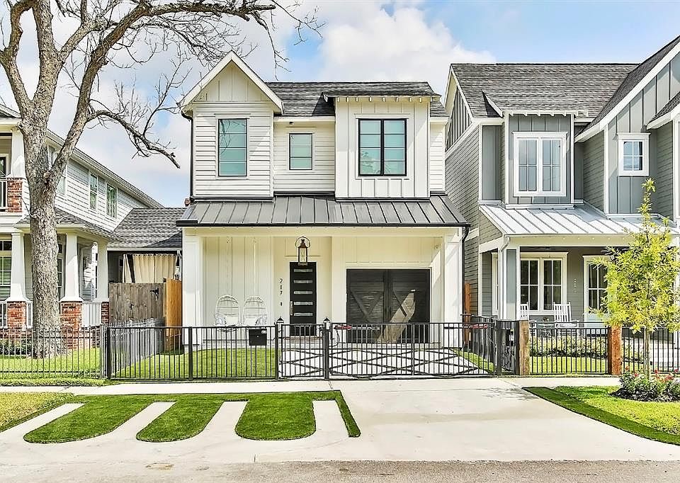 Art meets function at every turn in this spectacular Heights home. The mid-century modern entry door hintsat exceptional appointments: sleek metal railings, barn door, high ceilings with reclaimed-wood beams, polished nickel fixtures, Palladio wide-plank wood floors, porcelain marble surfaces, floating shelves &designer window treatments. The kitchen with double ovens and porcelain marble island, and dining room with wet bar and U-Line beverage fridge, are perfect for entertaining. Seamless indoor/outdoor living begins in den that opens to covered patio with kitchen, electric shades and mosquito mister. A 1st-floor bedroom can also be home office, and the 2nd floor offers the master suite, 2 other spacious bedrooms with ensuite baths, and game room. This Control4 smart home is pet-friendly with doggie bath in utility room and artificial turf in front/back yards. With zoning to Harvard Elementary and walkability to shops/restaurants, this home is Heights living at its absolute finest!