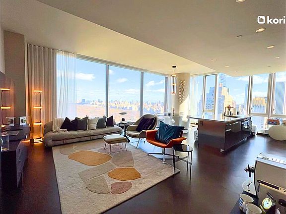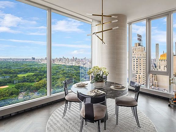 This corner three-bedroom, three-and-a-half-bathroom residence combines quintessential New York luxury with the rare serenity of park-front living. With 14-foot soaring ceilings and seven-foot-wide floor-to-ceiling glass panels, the interiors are bathed in natural light, showcasing sweeping north and east views of Central Park and the city beyond.