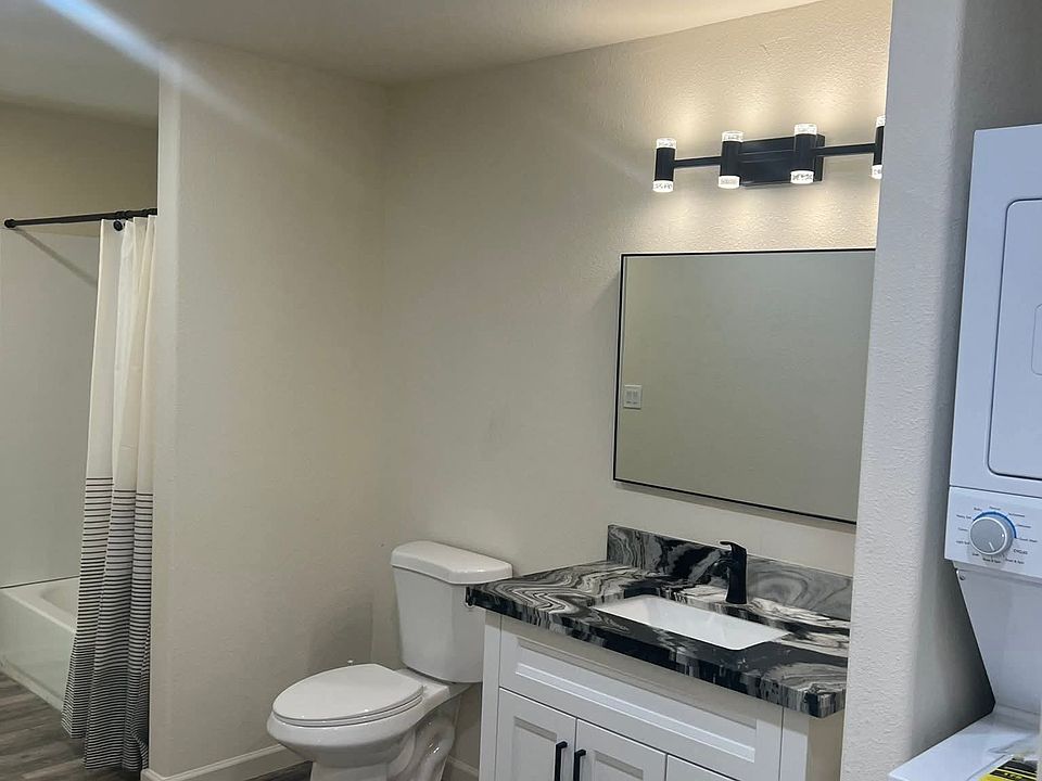 High-end fixturesBeautiful white cabinetsWasher and dryerBeautiful flooring