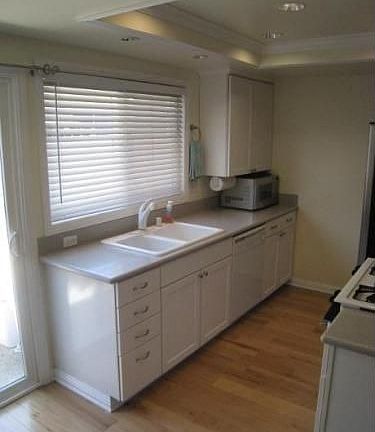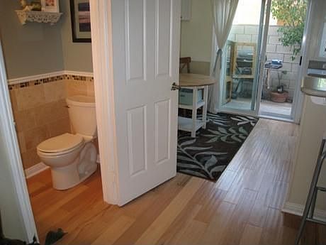 Large 2 Bedroom Townhouse! This condo has been recently remodeled and hosts a new kitchen with corian counters. New wood floors downstairs and newer carpet upstairs. Has an enclosed patio with private BBQ. Full bath has travertine tile and marble countertops. Shelves have been added in the garage for lots of additional storage. Bedrooms both have ceiling fans, closets with custom organizers and large double pane windows. Two car garage with laundry hookups. No Smoking, No Pets allowed.