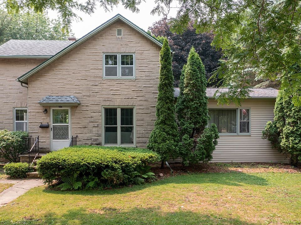 Recent updates throughout this Appleton home include: a brand-new main water line and sanitary sewer line coming into the house, as well as fresh paint throughout. The charming French doors will take you to a large family room and full bath. Upstairs holds all three bedrooms along with another full bath. You will find a third full bathroom downstairs. Relax on the backyard deck and enjoy the peaceful, private backyard full of apple trees and even some grape vines. Not too often do you find a half-acre home this close to downtown College Avenue! Exterior finish is vinyl and Permastone. Offers will be reviewed the morning of October 17, 2023