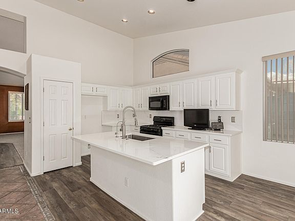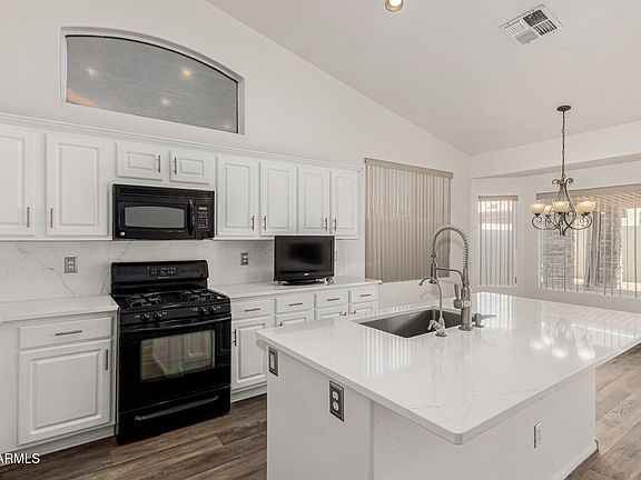 Welcome to your new home in the highly sought-after lake subdivision of Lago Estancia, where comfort, style, and community come together. Tucked away just minutes from the vibrant Heritage District of Downtown Gilbert, this home offers the perfect balance of tranquil living and urban convenience. Step inside and be captivated by the heart of the home: an inviting, open-concept family room filled with natural light, vaulted ceilings with a cozy tiled fireplace that seamlessly connects to a beautifully updated kitchen. This space is an entertainer's dream, featuring ample white cabinets, built-in appliances, a central island with a breakfast bar, and new quartz countertops and backsplash (2023), new under-mount sink and upgraded faucet. A charming eating nook with a bay window provides a lovely spot for casual meals. In addition, there is a separate living room and dining area, four bedrooms and two bathrooms, with one bedroom that can easily be transformed into a private den/office space, if that suits your needs.