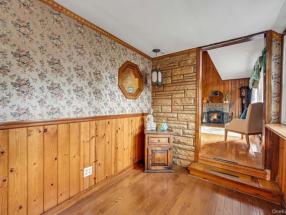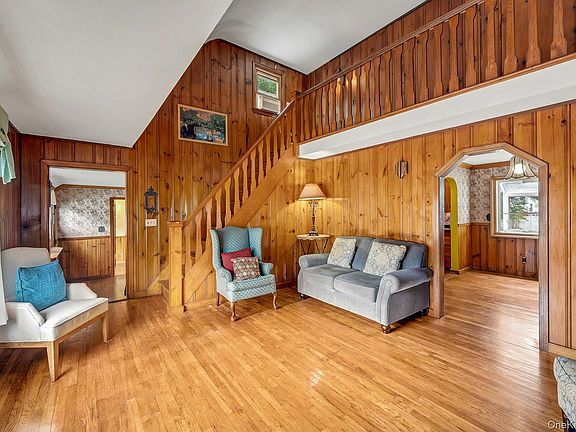 BIG LOT! Welcome to this inviting 3-bedroom, 2-bathroom Cape Cod home set on two lots totaling .76 acres—a rare find offering endless possibilities! Conveniently located just minutes from Lincoln Elementary School, downtown Pearl River, with its vibrant restaurants, shops, and parks, and train to Manhattan, this home combines suburban tranquility with commuter convenience. Easy access to the NYS Thruway, Palisades Parkway, Garden State Parkway, and 287 make travel in any direction a breeze. Inside, warmth and character abound. The living room features soaring vaulted ceilings, natural pinewood paneling, and a cozy fireplace, creating a welcoming retreat for relaxing evenings. A charming loft-style hallway connects to the primary bedroom and overlooks the living room, adding architectural interest and an open, airy feel. The family room also has vaulted ceilings and abundant natural light, offering an ideal space for gatherings or quiet moments. There is plenty of flexible space throughout—rooms that can easily function as a formal dining room, home office, music room, or creative studio. Upstairs, a private bedroom suite includes a full bath and sitting area, perfect for guests, or a peaceful owner’s retreat, with two additional bedrooms and a full bathroom on the first level. Outdoors, the expansive yard provides exceptional space for recreation and future dreams or simply enjoying barbecues and gatherings on the deck and appreciating some shade under the trees. This home is full of charm, functionality, and potential—enjoy as-is or reimagined to suit your own personal vision.