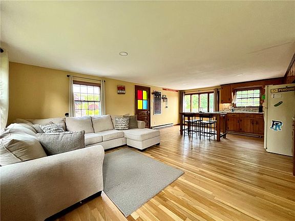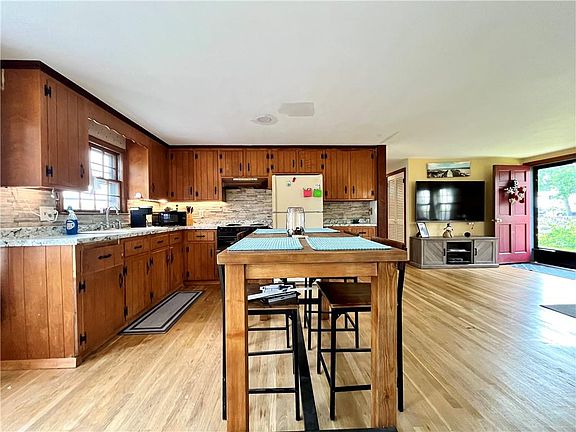 Solid, well-built ranch just steps from the golf course. The kitchen & living room are an OPEN CONCEPT ideal for entertaining. All 3 bedrooms are overly generous in size with abundant closet space. Hardwood flooring is found throughout the 1st floor and NEW LVP flooring is in the basement.The finished lower is a great space, with full size windows, walk out, wood burning fireplace, bar & 1/2 bath. The walk out leads to a HUGE backyard with plenty of room for a pool, outdoor fun & games. The expansive deck is another option for summer entertaining & dining.